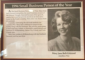 Mary-Jane was selected as the Williamsburg Area Chamber of Commerce's "Small Business Person of the Year" for 1994