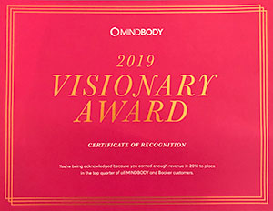 The Pilates Center for Fitness and Therapeutic Conditioning was awarded the "Visionary Award" in 2019 for being in the top 25% of all MINDBODY affiliates in the world. (50,000 businesses worldwide)